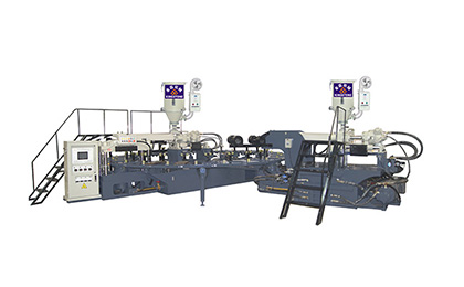它們主要由加熱、射膠、熔膠系統、鎖模系統組成。三色機則與雙色機類似,它有一臺主機,兩臺副機組成。主機負責圓盤的旋轉及定位。制鞋設備